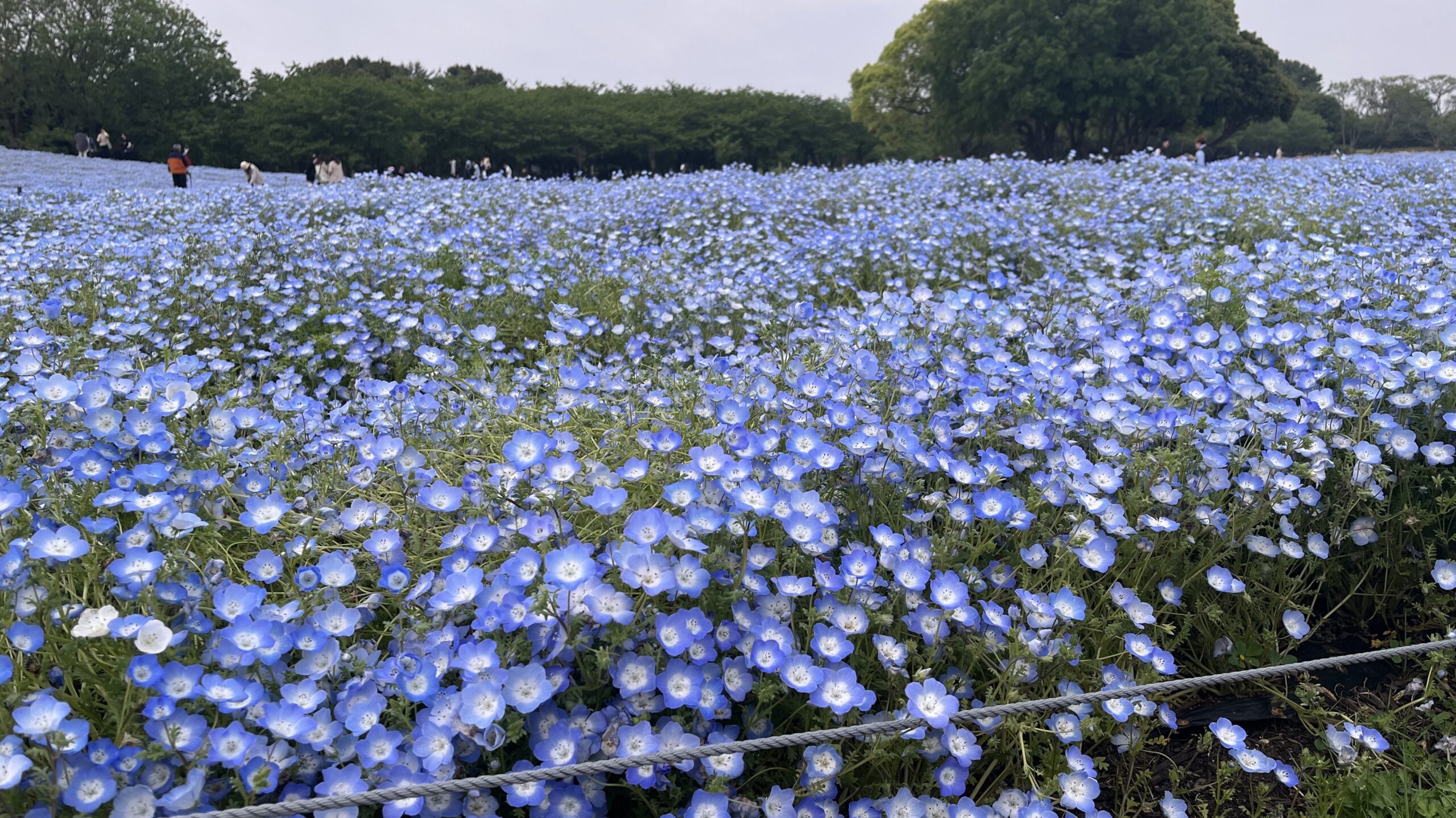 海の中道海浜公園のネモフィラ畑です。とても大きな花畑で天気がいい日には空とネモフィラの一面青色の景色を見ることができます。さらにネモフィラソフトという青リンゴ味のソフトクリームが食べられちゃうんです!!穏やかな時間を過ごすことができるので、ぜひとも皆様に足を運んでいただきたいですね!